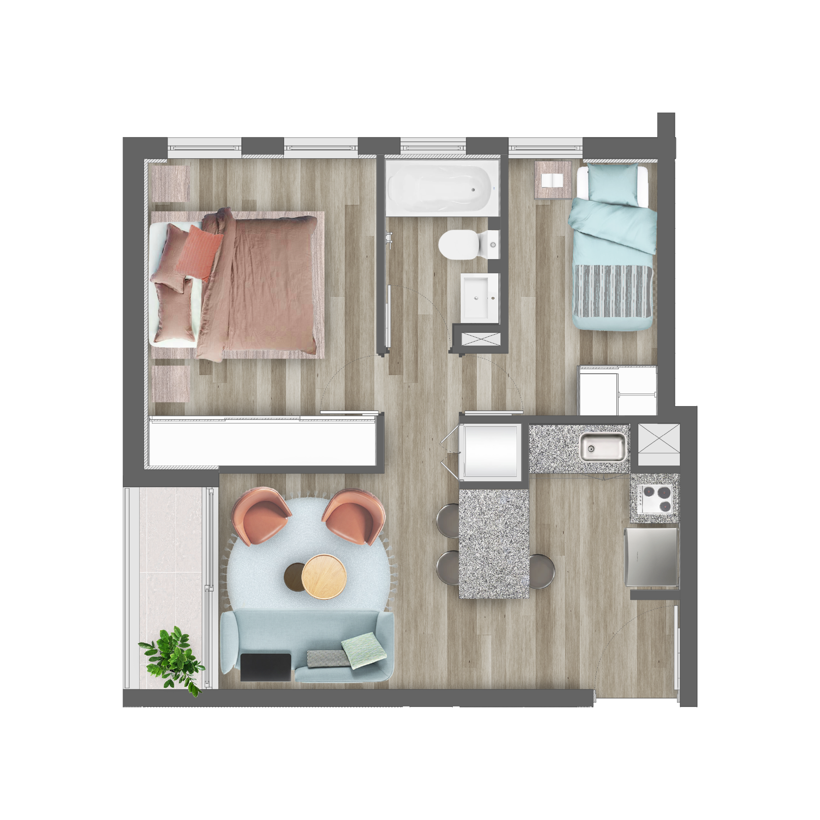 TIPO C1 - 1D+1B